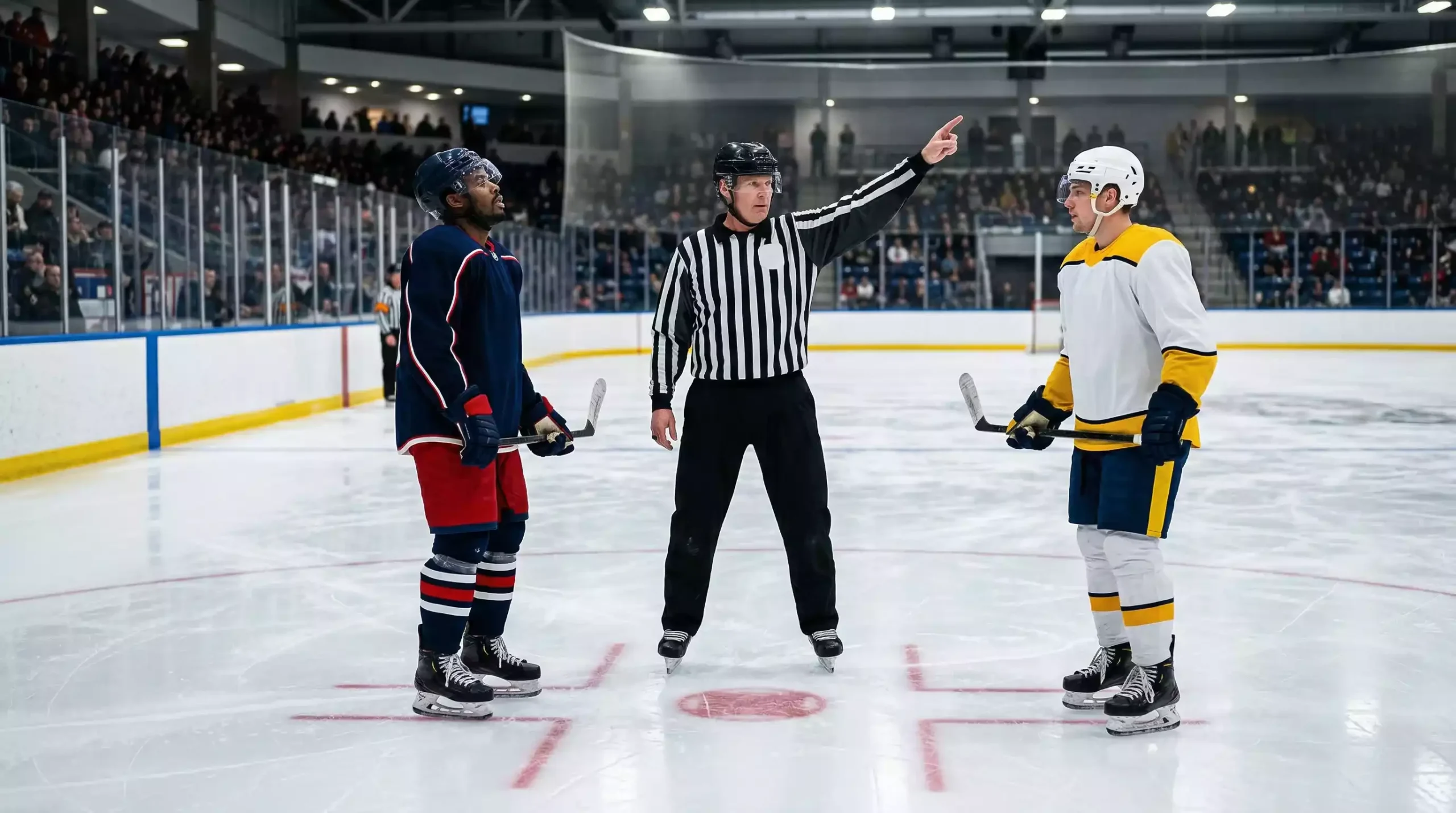 Das Spiel beginnt mit einem Bully — dem Anstoß, bei dem der Schiedsrichter den Puck zwischen zwei Spieler wirft. Bullys finden nicht nur zu Spielbeginn statt, sondern nach jedem Tor, nach jeder Unterbrechung und zu Beginn jedes Drittels. Die Fähigkeit, Bullys zu gewinnen, ist eine eigene Disziplin, die im Eishockey überraschend wichtig ist — Teams, die den Puck nach dem Bully kontrollieren, haben einen statistisch messbaren Vorteil.